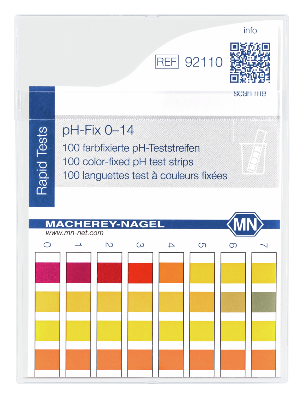 Las tiras reactivas de pH, pH-Fix 0-14 de Macherey-Nagel, son dispositivos simples y eficaces para la medición rápida del pH en diversas soluciones y líquidos. Estas tiras ofrecen una amplia gama de pH de 0 a 14, cubriendo tanto ácidos fuertes como bases fuertes. Son fáciles de usar: simplemente sumerge la tira en la muestra, espera unos segundos y compara el color de la tira con la escala de colores proporcionada en el empaque. Ideales para aplicaciones rápidas y de campo donde se necesita una indicación visual inmediata del pH.